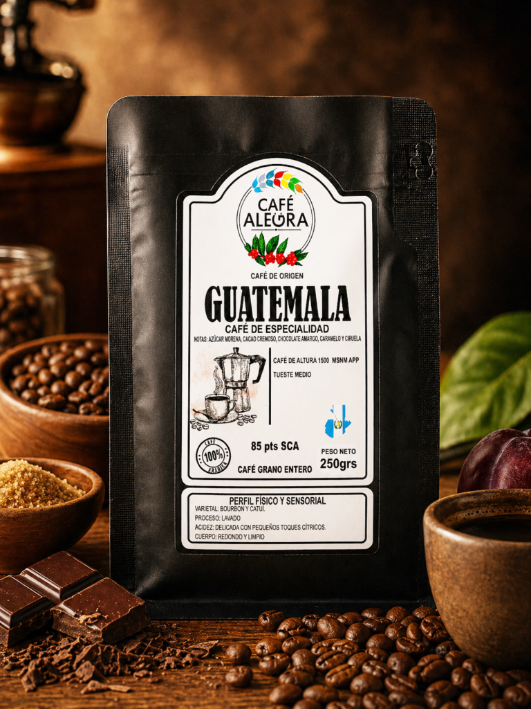 Café de especialidad en grano, puro – 250 Grs. Un café 100 % arábica de Guatemala, balanceado y aromático
