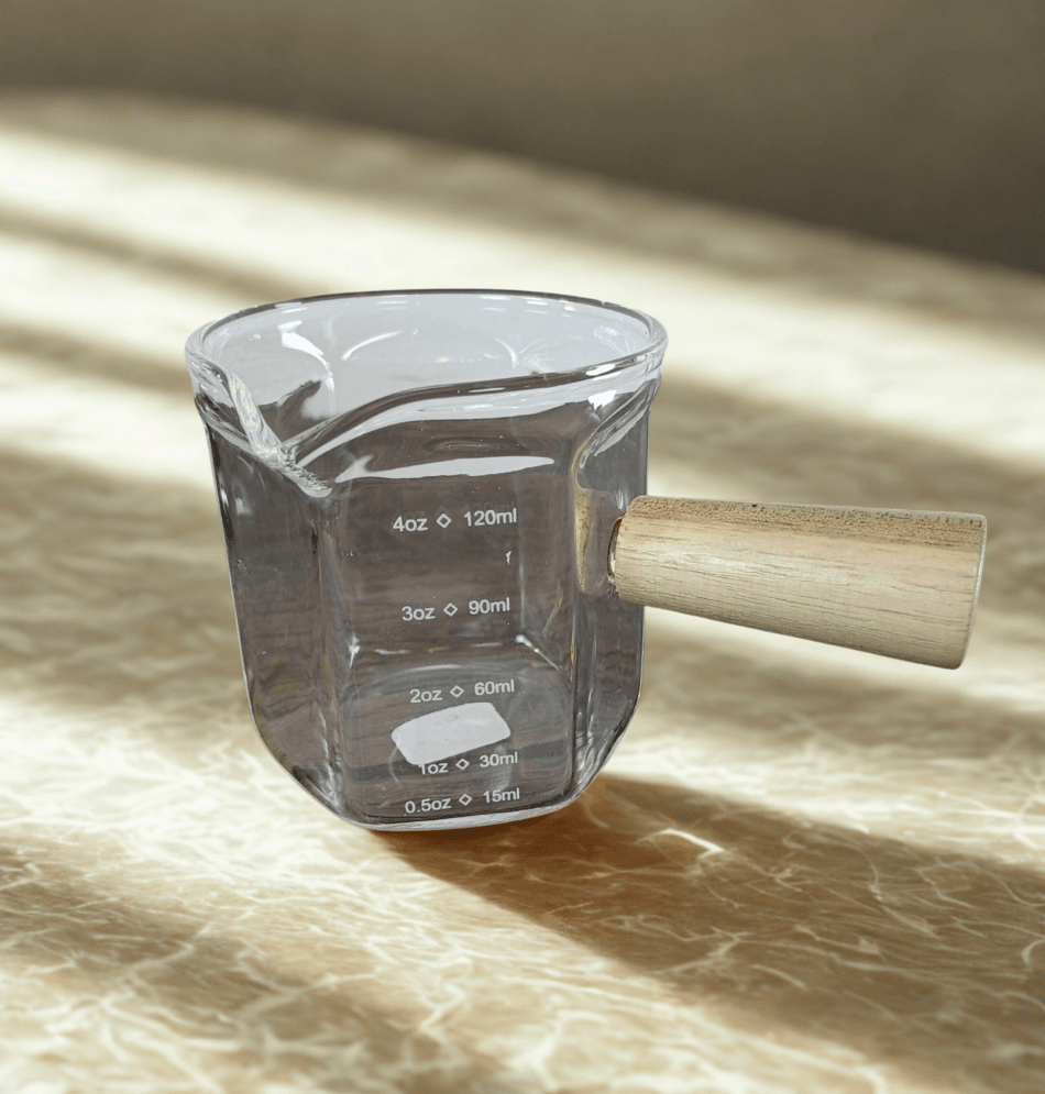 Vasos medidores para café espresso con caño de madera